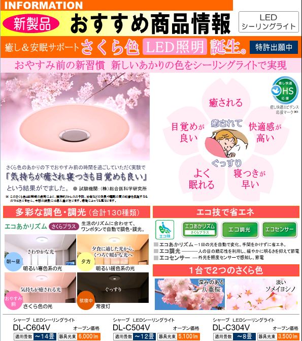 癒し&安眠サポート さくら色LED照明 誕生