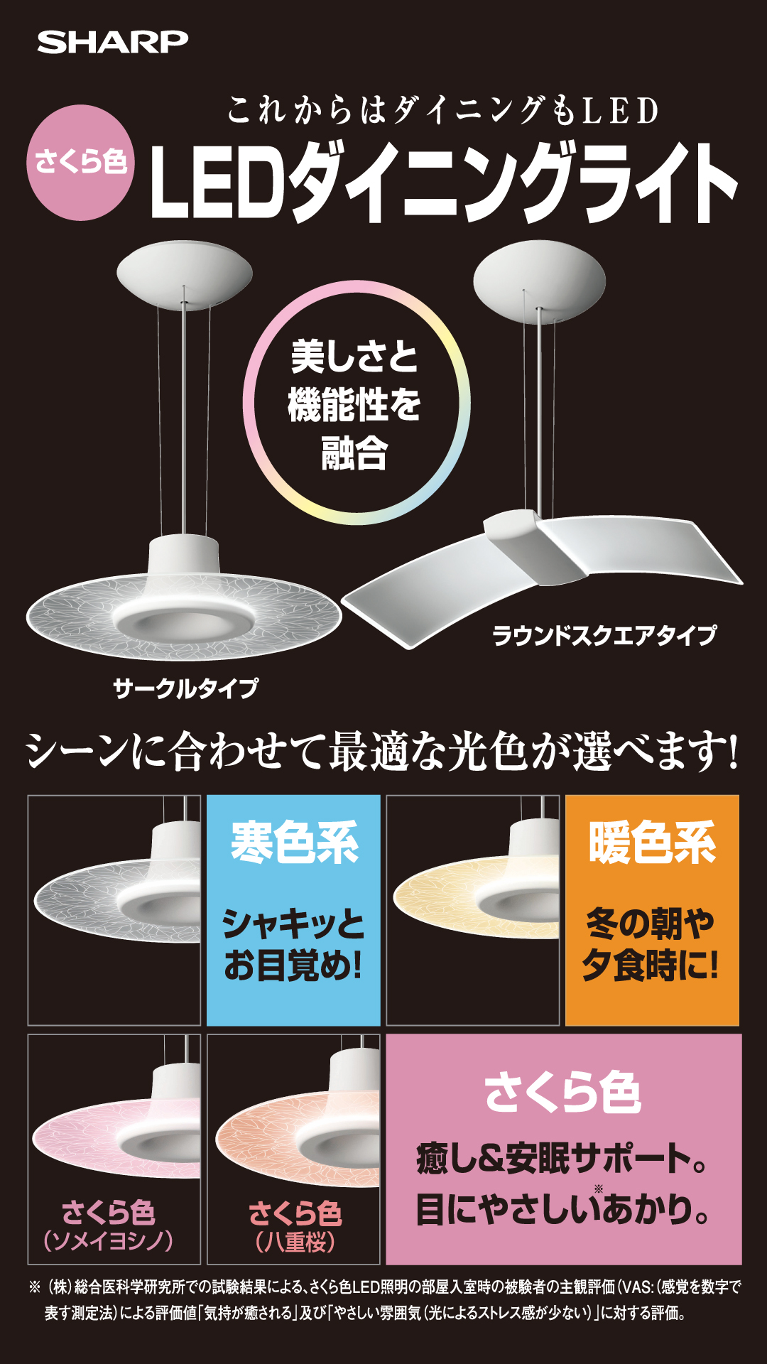 美しさと機能性を融合 LEDダイニングライト 投稿日時: 2012年10月25日 投稿者: suzuki-dc 返信 http://www.sharp.co.jp/led_lighting/dining/index.html