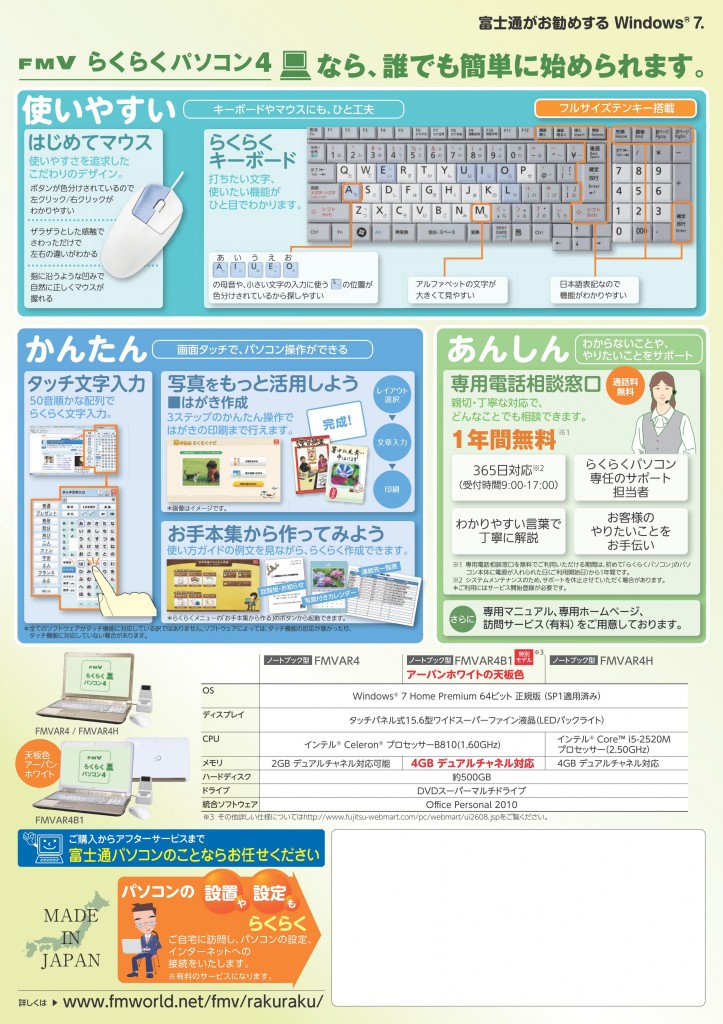 かんたん操作で高性能な富士通FMVらくらくパソコンをお勧めします!